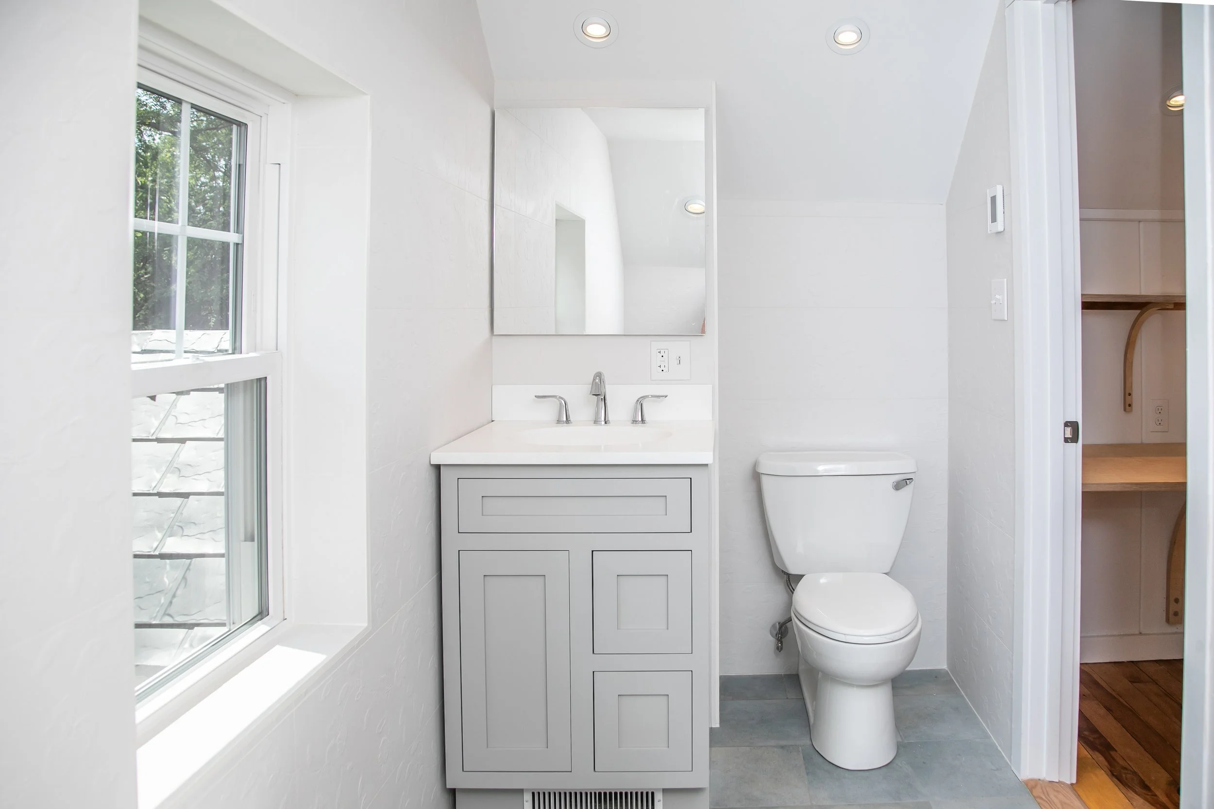 We added a full bath to the second level of this modest Northampton home, and created an additional child’s bedroom with welcoming space for homework.